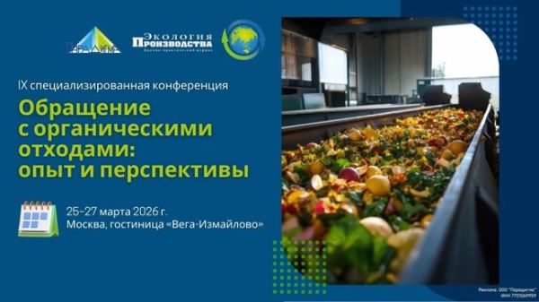 Рады сообщить, что открыта регистрация на IX Конференцию «Обращение с органическими отходами: опыт и перспективы», которая состоится 25–27 марта 2026 года в Москве.