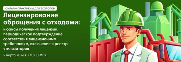 Продолжается регистрация на онлайн-практикум «Лицензирование обращения с отходами: нюансы получения лицензий, периодическое подтверждение соответствия лицензионным требованиям, включение в реестр утилизаторов»