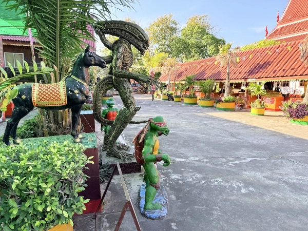 На входе змей, пожирающий слона. А дальше просто микс: статуи Будды (во множестве форм) мирно сосуществуют рядом с фигурками Черепашек-ниндзя. А те, в свою очередь, улыбаются фантастическому герою из фильма «Чужой».