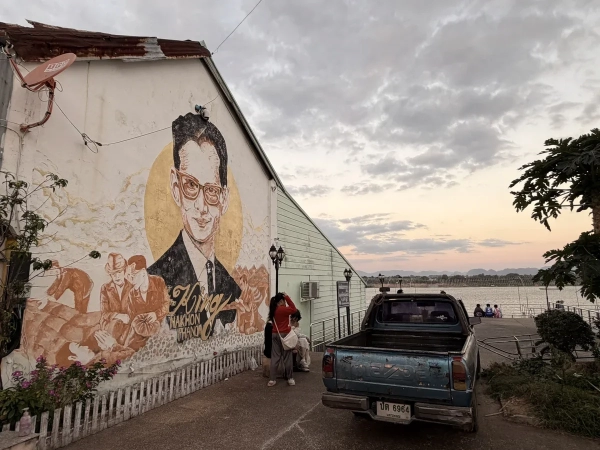 Помимо покупок можно полюбоваться граффити с изображением короля Таиланда Рамы IX (Пхумикона Адульядета). Накхон Пханом. Таиланд. Фото: Александра Полянская, для АТОР